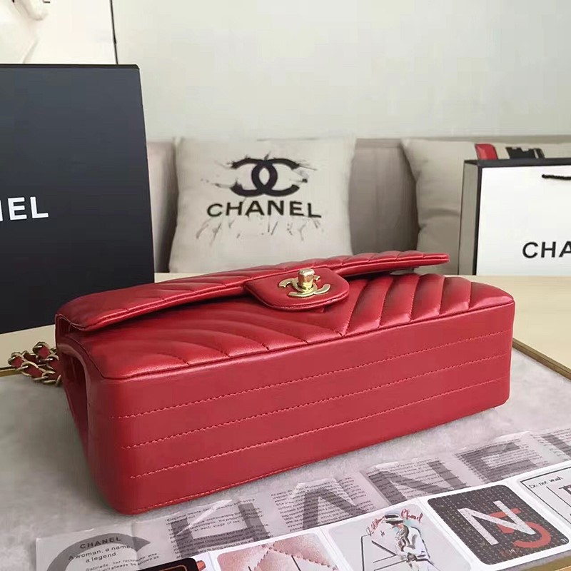 • 샤넬 쉐브론 클래식 플랩백 25  -램스킨/레드/금장