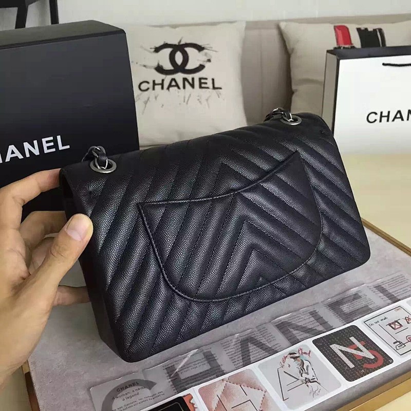 • 샤넬 쉐브론 클래식 플랩백 25  -램스킨/은장/블랙