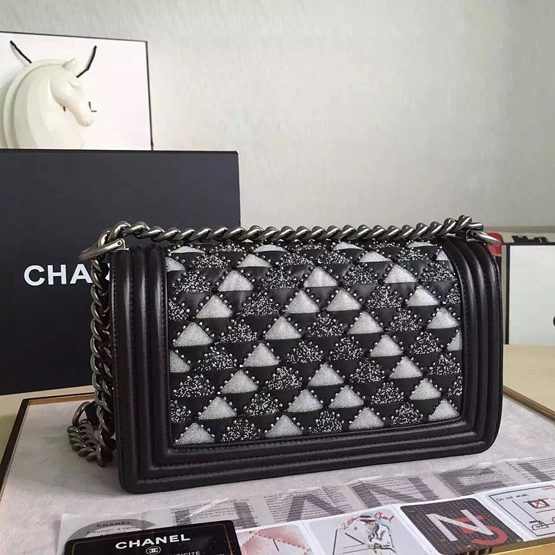 • 스티치 보이백25  -블랙/은장
