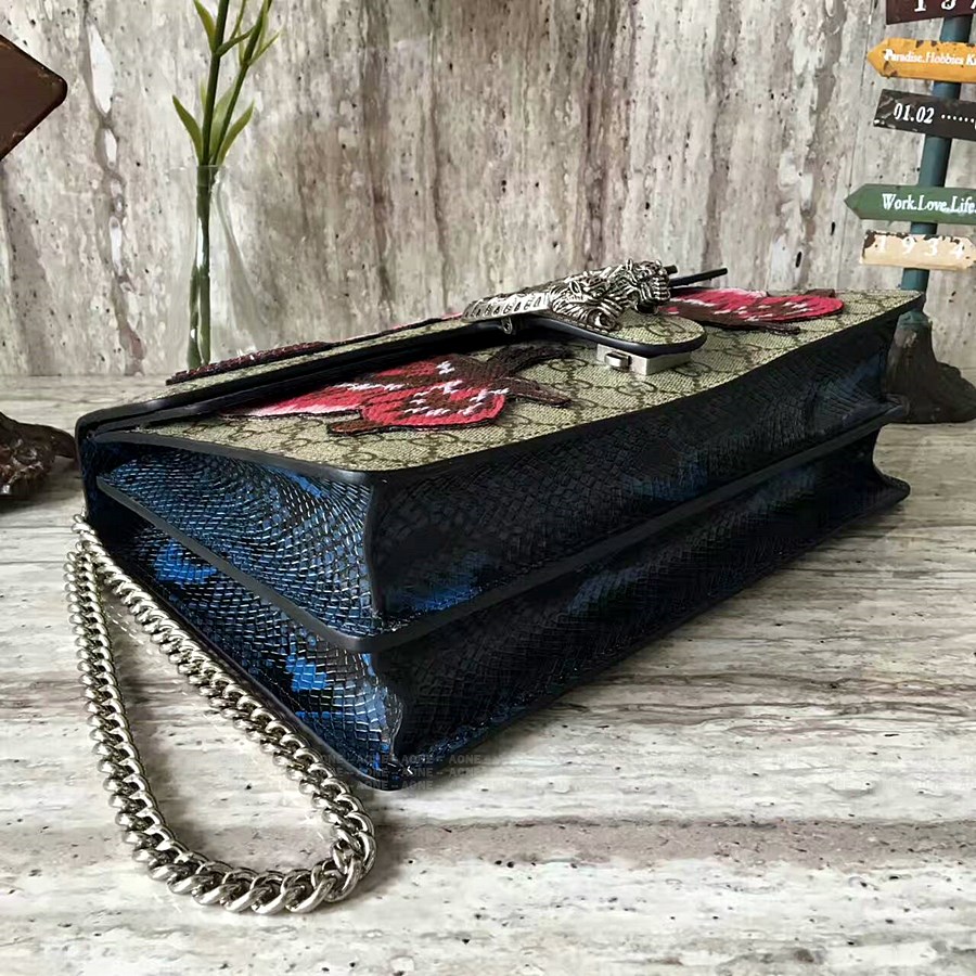 #구찌 #Dionysus#디오니소스 #GG #수프림 #캔버스 #숄더백 #403348스트럭처드 스웨이드 백 제우스가 보내 준 호랑이를 타고 티그리스 강을 건넜다는 그리스 신화 속 신 디오니소스를 떠올리게 하는 독특한 디테일의 텍스처 타이거 헤드 잠금장치 다양한 방식으로 활용하여 숄더백/탑 핸들 백 형태로 착용할 수 있는 슬라이딩 체인 스트랩 인도 장인들이 특별 제작한 자수 라인스톤 소형 스톤 비즈 아플리케를 오간자에 수작업으로 스티칭한 다음 이탈리아의 숙련된 장인들이 가방에 직접 장식합니다 장인들의 수작업 특성에 따라 모든 제품은 각기 다른 매력을 지니게 됩니다#홍콩명품사이트 #에이원