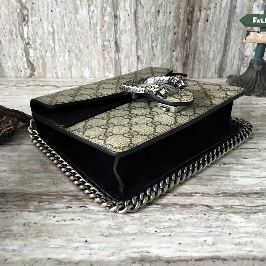 #구찌 [Dionysus #디오니소스] #GG #수프림 #숄더백 #블랙미니 스트럭처드 백 텍스처 타이거 헤드 스터럽 잠금장치 슬라이딩 체인 스트랩을 다양한 방식으로 활용하여 숄더백/탑 핸들 백 형태로 착용할 수 있습니다#홍콩명품사이트 #에이원