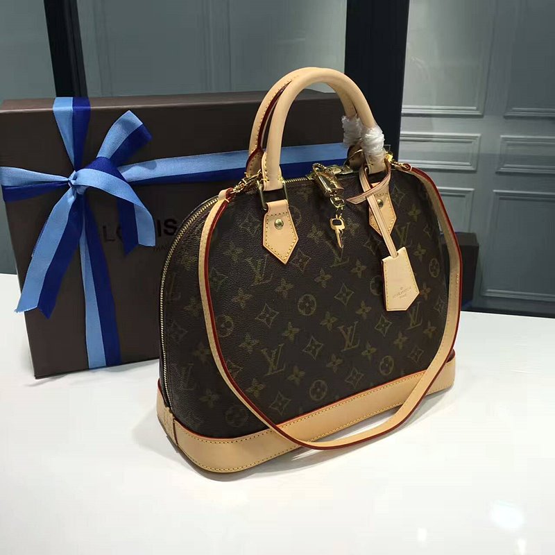 Louisvuitton alma-mm-monogram루이비통 #알마 #mm #모노그램 #핸드백 #M40878 핸드 캐리 자물쇠가 포함된 양방향 지퍼 가죽 열쇠 참 금색 메탈 장식 천연 소가죽 트리밍 텍스타일 안감 내부 스마트폰 포켓 2개 바닥 보호 스터드
