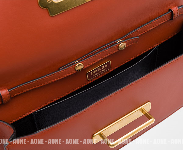 PRADA CAHIER BAG 1BF048_2BB0_F027M_V_CCH Prada 카이에 송아지 가죽 및 사피아노 가죽 클러치 탈부착식 메탈 체인 숄더 스트랩 브론즈톤 메탈 하드웨어 메탈 레터링 로고 앞면 스트랩 잠금 내부 포켓 1개 가죽 라이닝