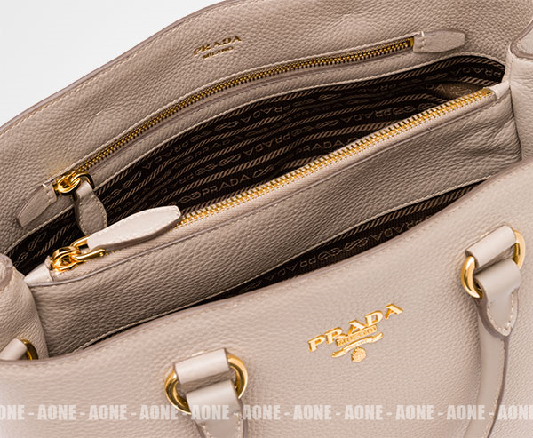 탑 핸들 1BA579_2BBE_F0D32_V_OOM 송아지 가죽 토트백 더블 가죽 핸들 조절형 탈부착 가죽 숄더 스트랩 금장 하드웨어 메탈 레터링 로고 지퍼식 중앙 포켓 1개. 지퍼식 내부 포켓 2개 Prada 로고 안감 치수 l 330 h 235 w 160 cm