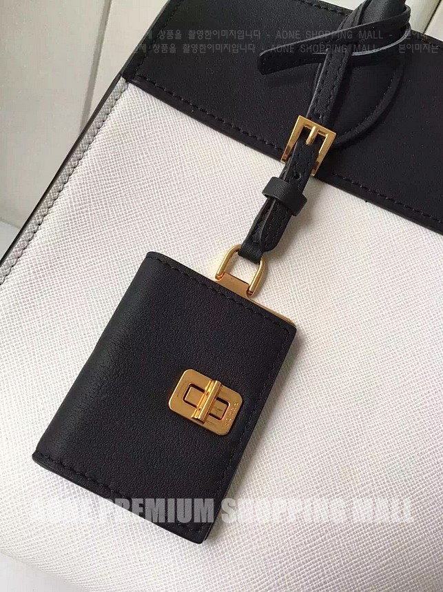 Prada 1BA046 Medium Esplanade Saffiano and Calf Leather Bag Whtie/Black