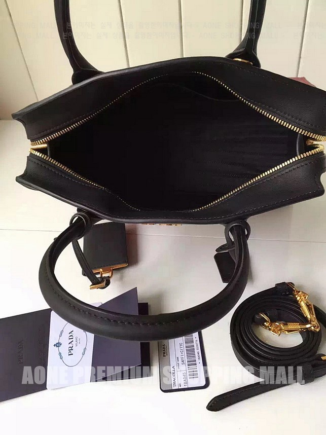 Prada 1BA046 사이즈 : 30x22x14.5 cm 더블 가죽 핸들 분리 가능한 조절 가능한 가죽 숄더 스트랩 골드 도금 하드웨어 메탈 레터링 로고 지퍼 잠금 장치 지퍼 잠금 장치가있는 세 개의 내부 포켓 프라다 로고 라이닝