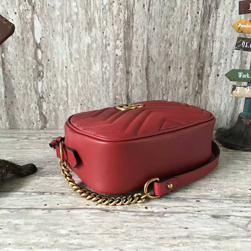 레드 마틀라세 쉐브론 가죽 및 뒷면에 GG 장식