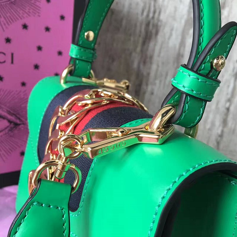 실비 미니 사이즈 탑 핸들 백. 패브릭 아래에 나일론 Web 디테일 골드 체인 및 버클 장식. 하우스의 아카이브에서 발췌한 메탈 버클 잠금장치와 재치 있는 Web 스트라이프 뉴 플로라 프린트의 내추럴 그레인 가죽으로 제작