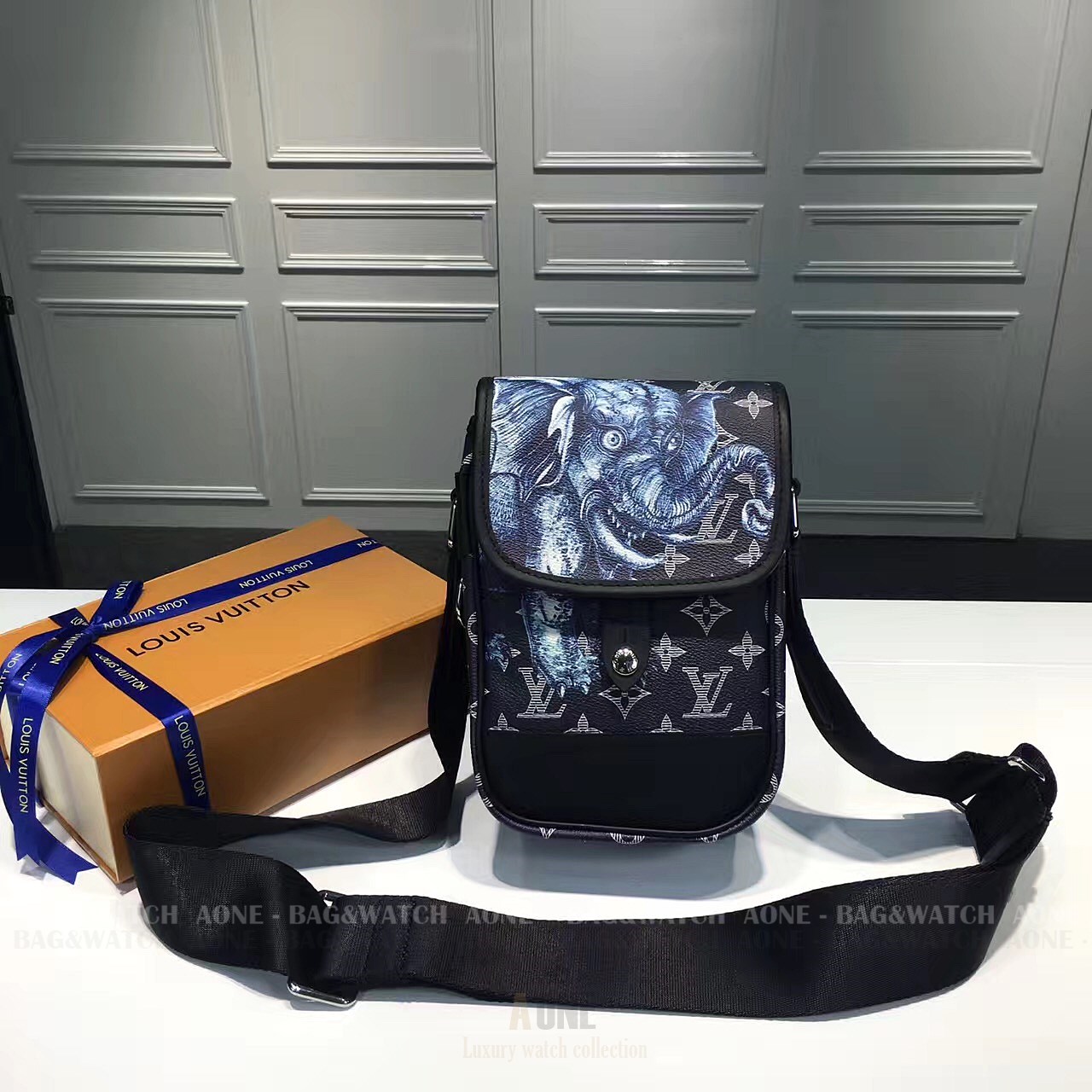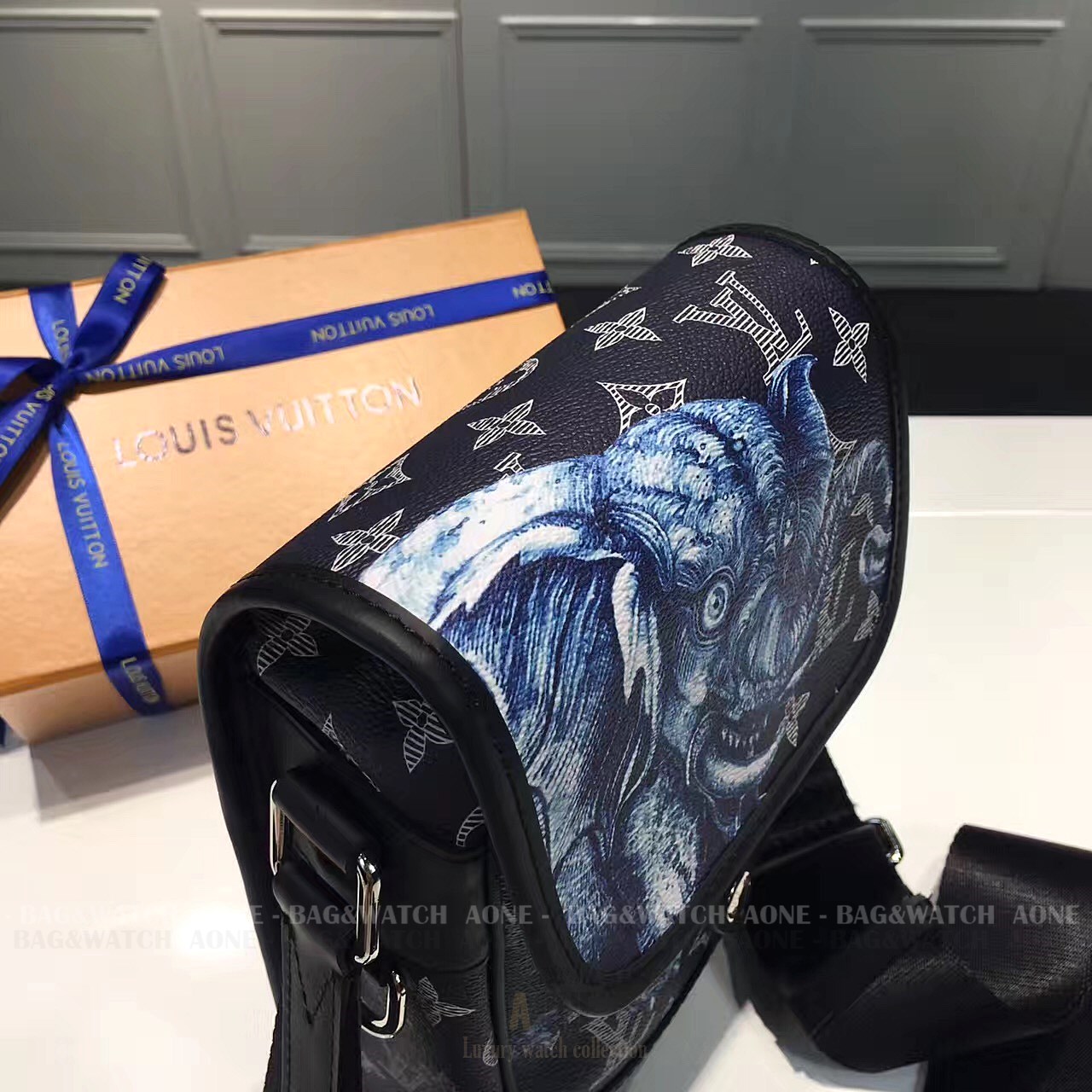 루이 비통이 영국 출신의 저명한 아티스트 제이크 다이노스 채프먼(Jake Dinos Chapman) 형제와 손을 잡고 선보인 두 번째 컬렉션인 2017 봄-여름 남성 패션쇼에서는 몽환적인 야생 동물의 세계가 펼쳐졌습니다 채프먼 형제 특유의 시그니처 스타일은 독특한 사자 기린 얼룩말 코뿔소 코끼리 일러스트로 구현되었습니다 야생 동물이 어슬렁거리는 모노그램 사바나 캔버스 소재의 새로운 메신저 모델은 여러 개의 포켓으로 구성된 가볍고 실용적인 아이템으로 길이 조절형 스트랩을 활용하여 어깨에 메거나 크로스-바디 스타일로 착용할 수 있는 가방입니다