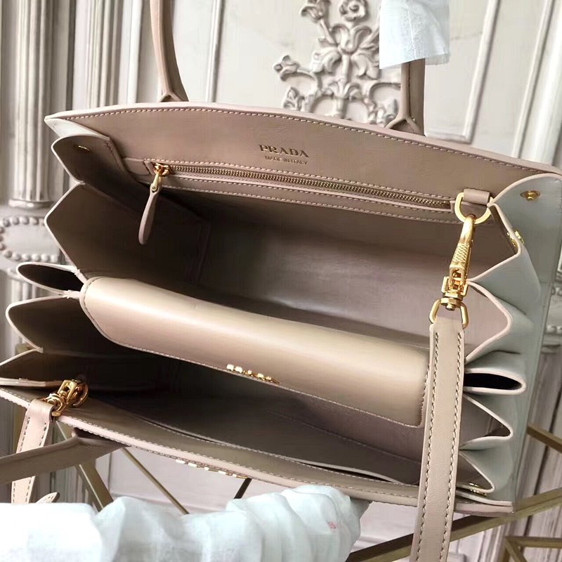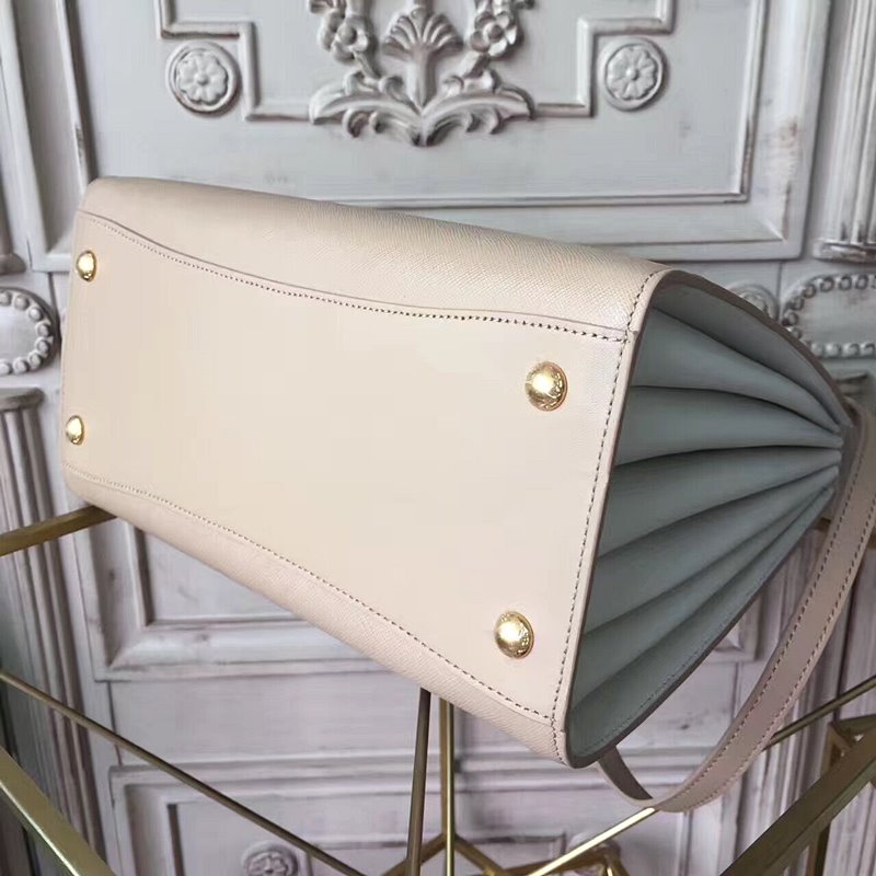 • 프라다 송아지 가죽 투톤 가죽 핸들 핸드백 1BG148 베이지