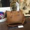 • 프라다 송아지 가죽 투톤 가죽 핸들 핸드백 1BG148 브라운