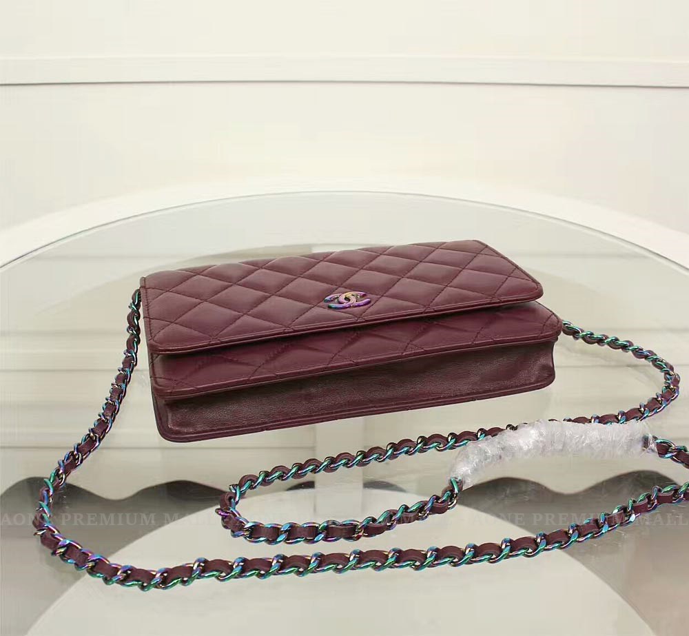 샤넬 클래식 월렛 온 체인 WOC -램스킨/버건디