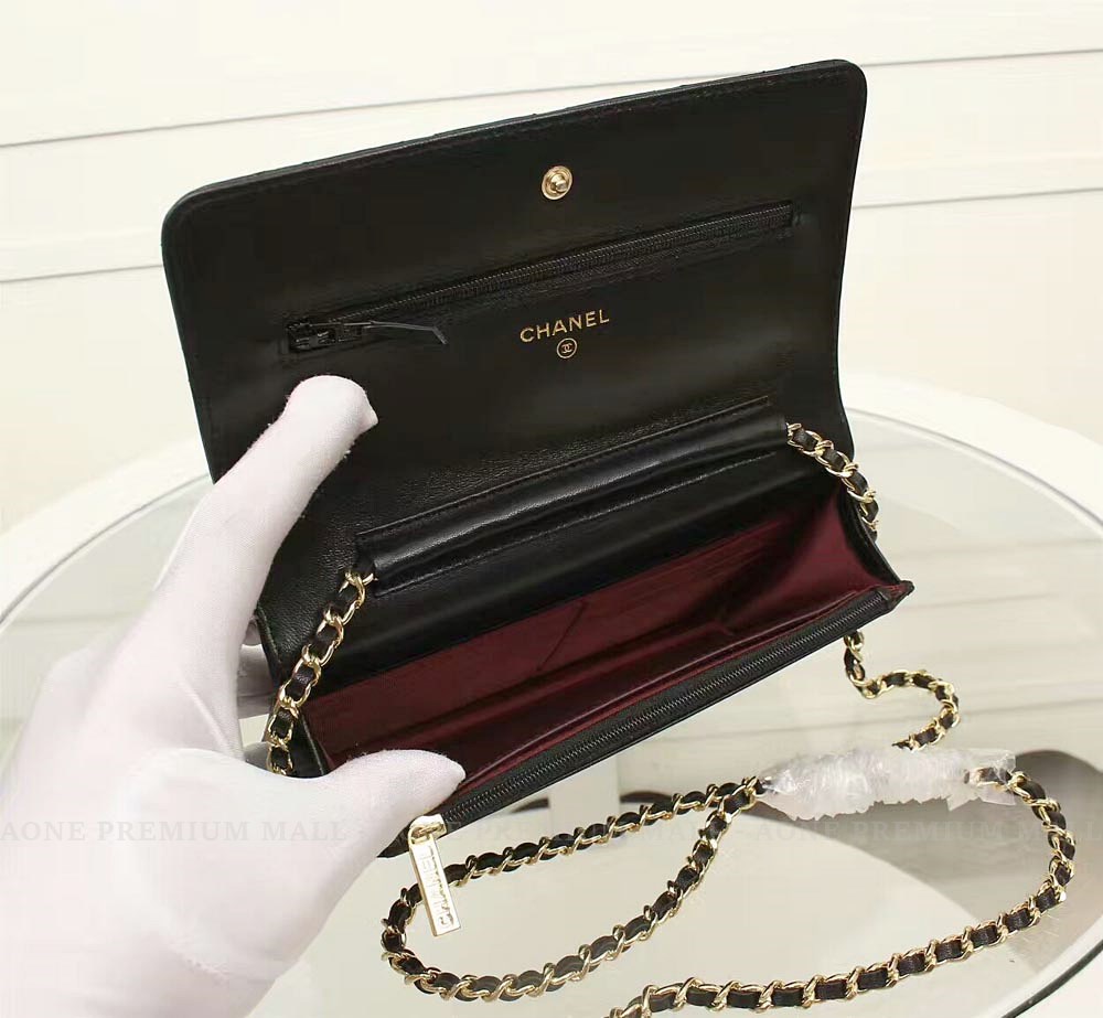 샤넬 클래식 월렛 온 체인 WOC -램스킨/블랙
