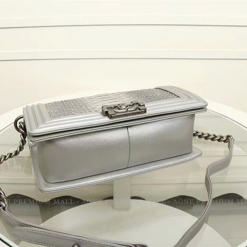 • 샤넬 미듐 파이썬 보이 플랩 백 -실버/실버
