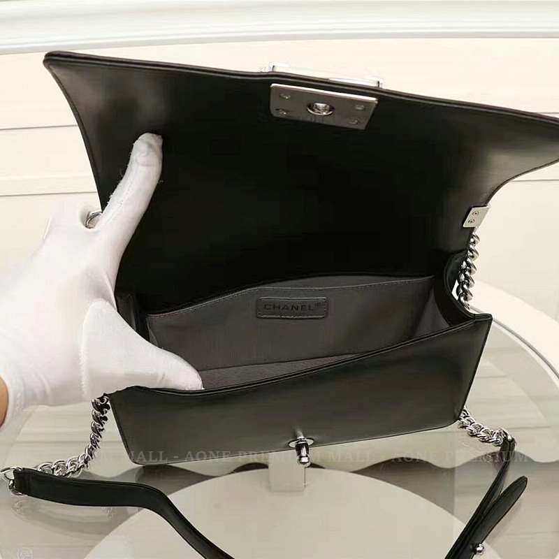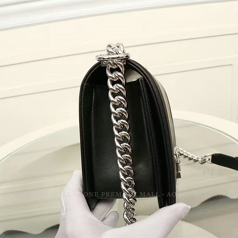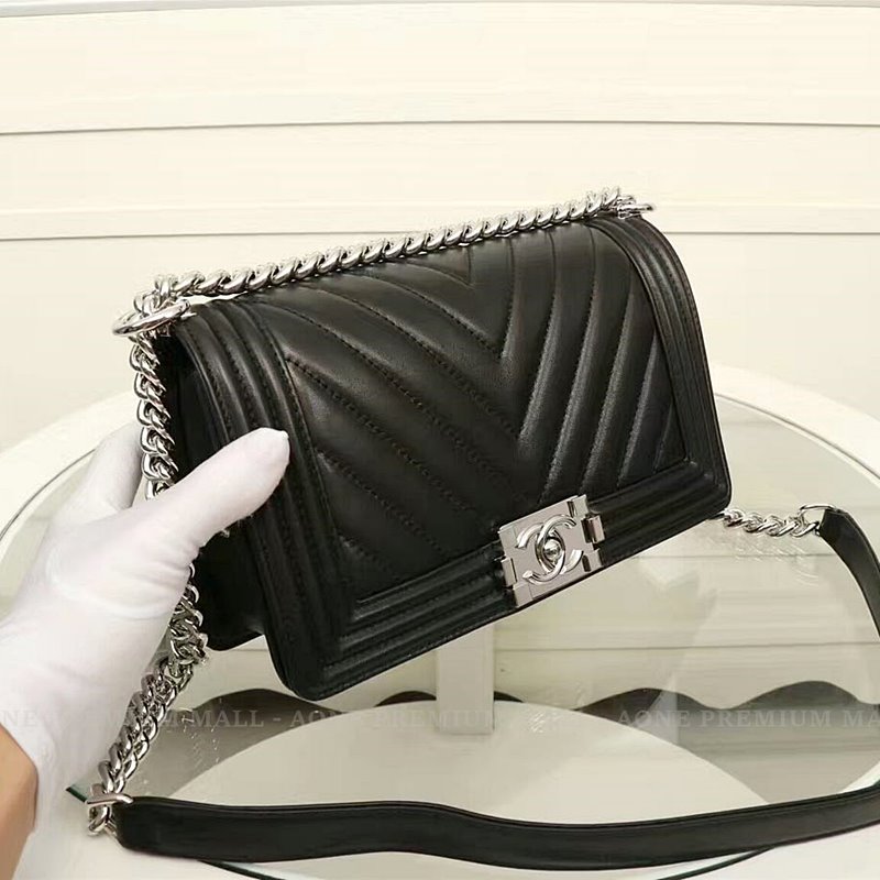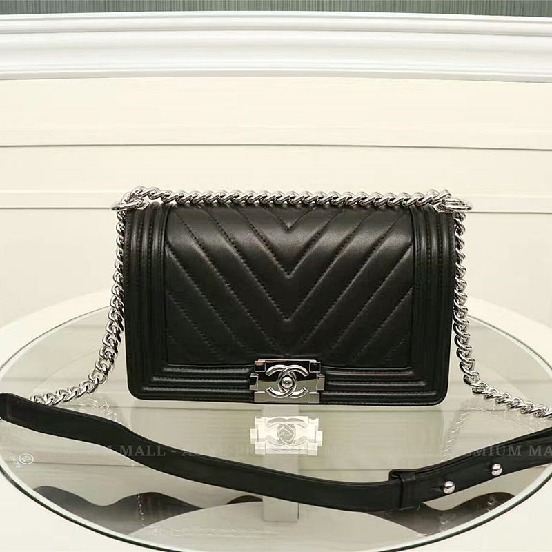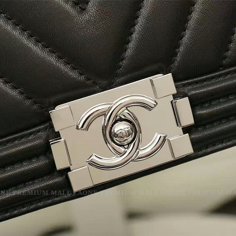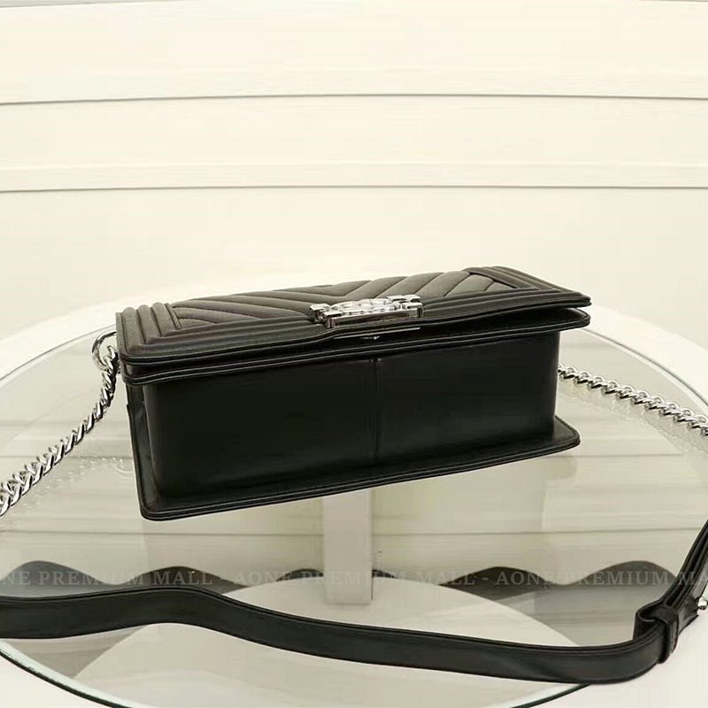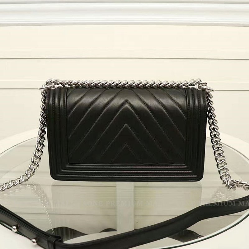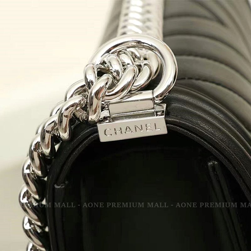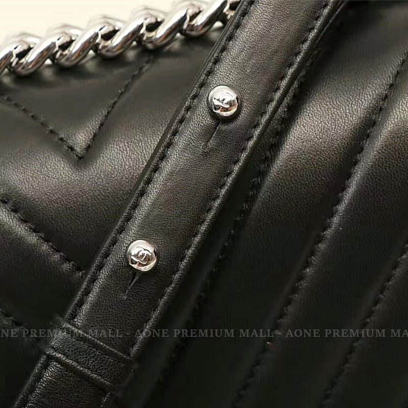 • 샤넬 라지 스티치 쉐브론 패턴 카프스킨 미듐 보이 플랩 백 -블랙