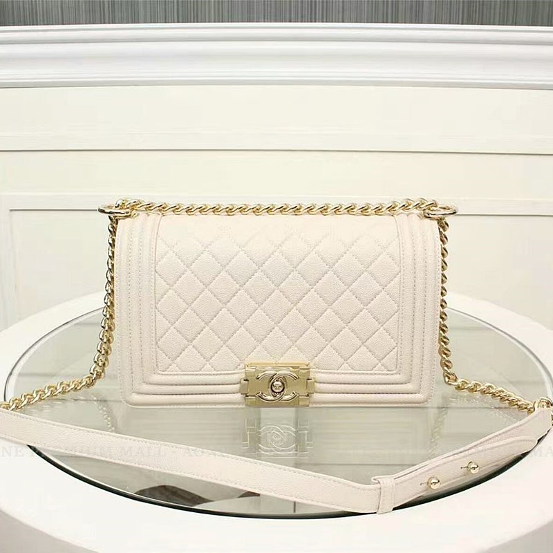 Chanel Medium Caviar Calfskin Boy Flap Bag -gold/white