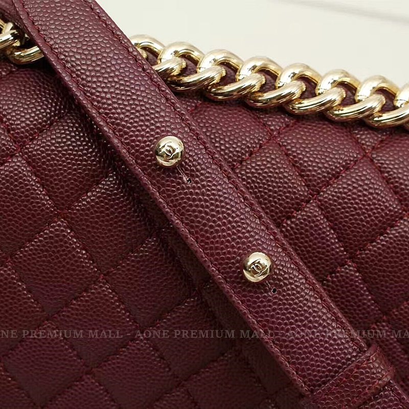 • 샤넬 미듐 캐비어 카프스킨 보이 플랩 백 -골드/버건디