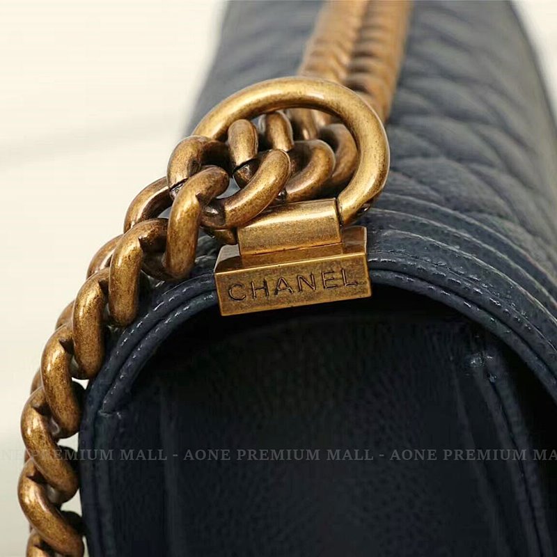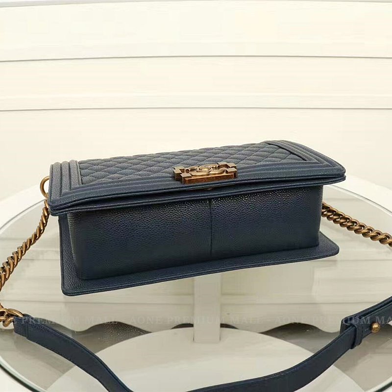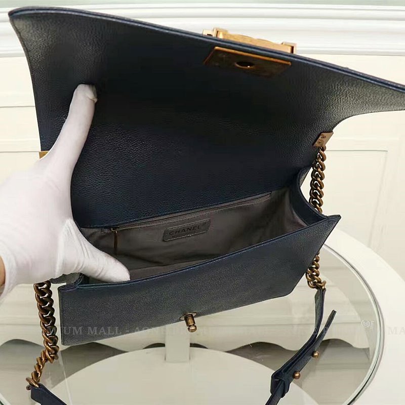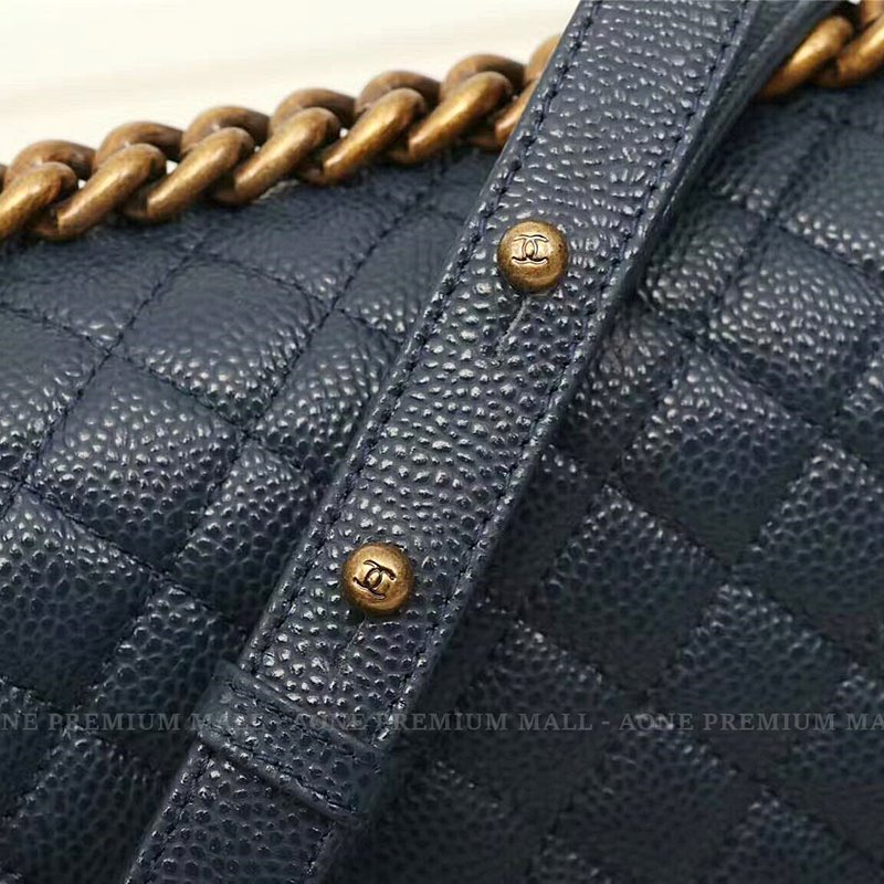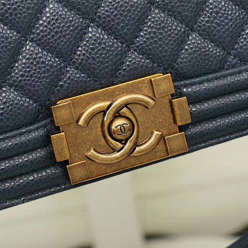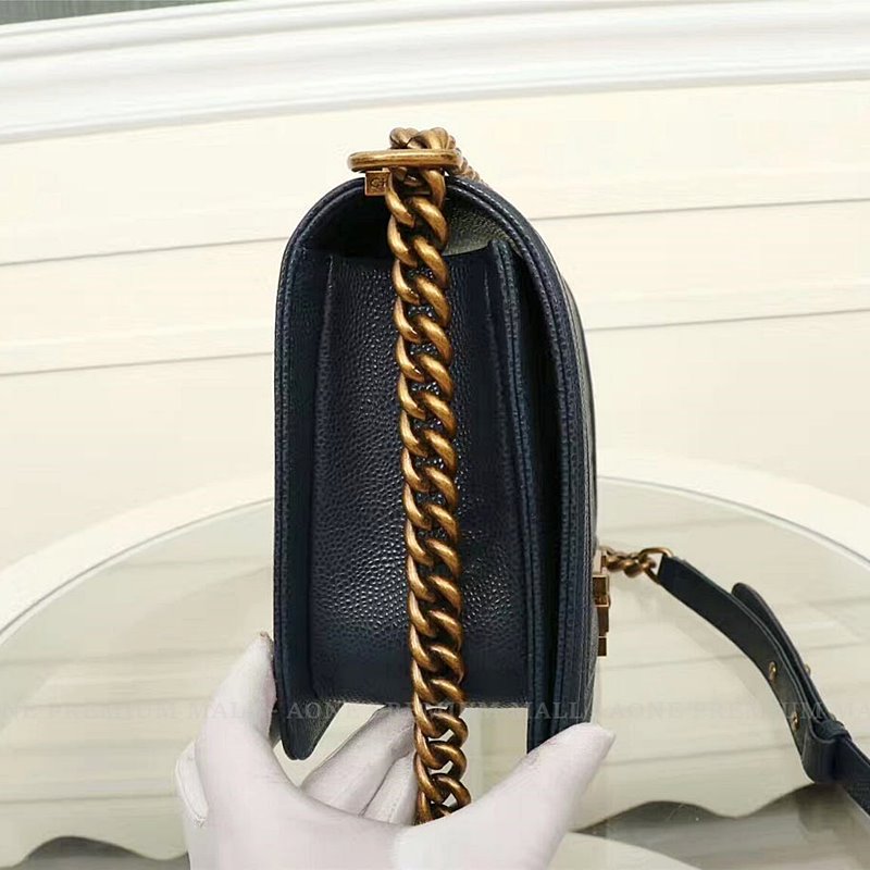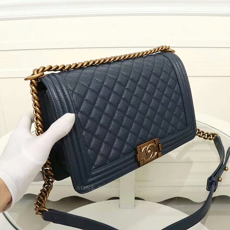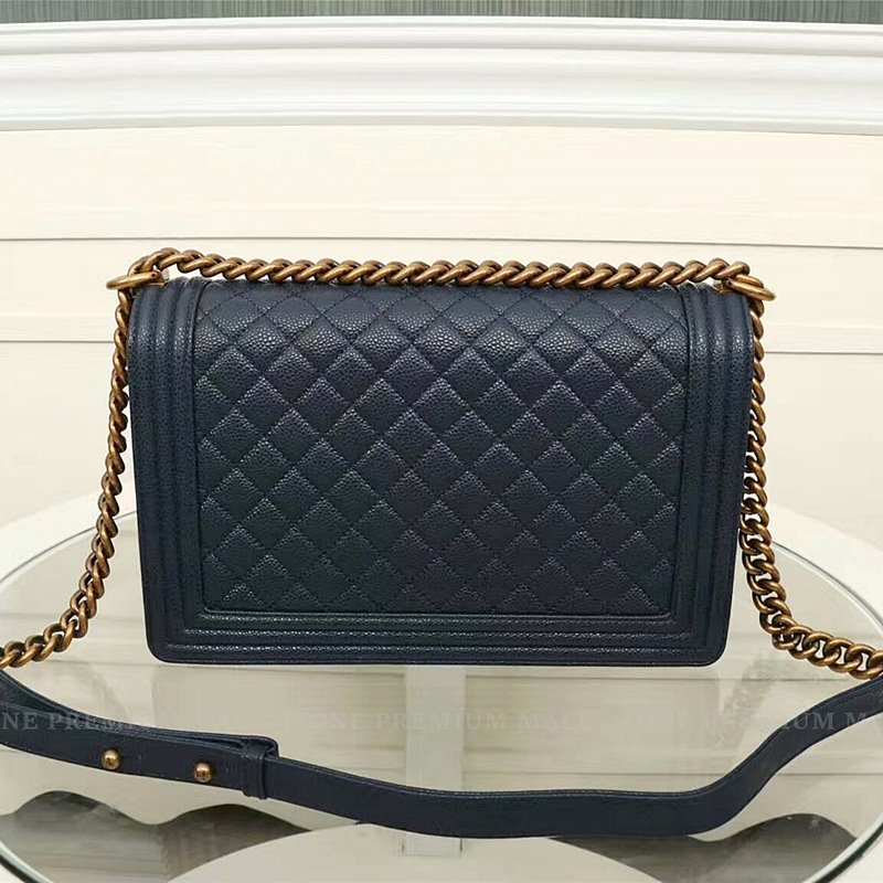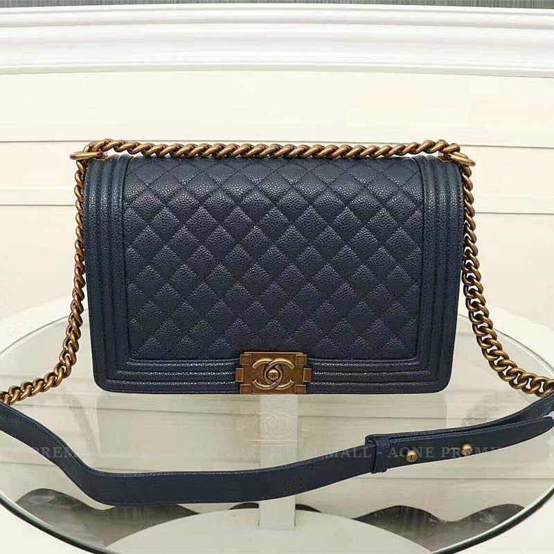 • 샤넬 라지 캐비어 카프스킨 보이 플랩 백 -네이비/골드
