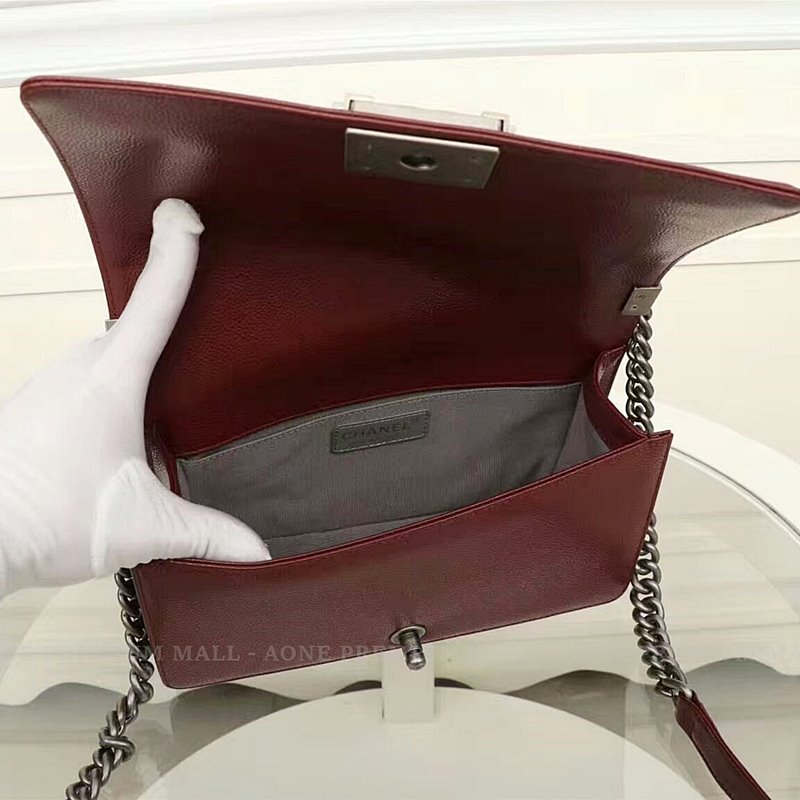 Chanel Medium Caviar Calfskin Boy Flap Bag -red/silver