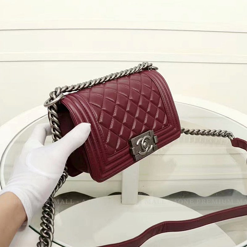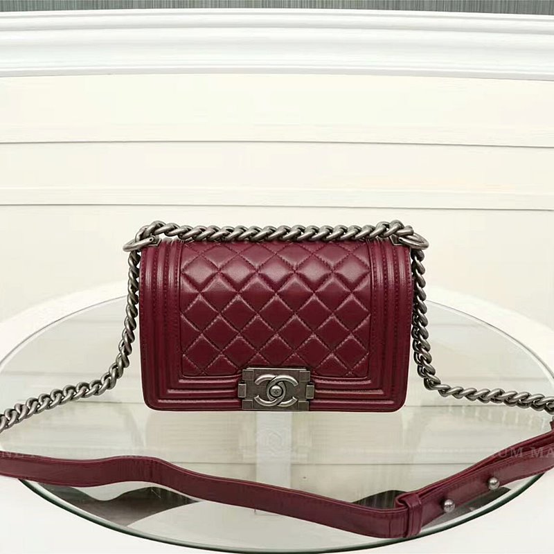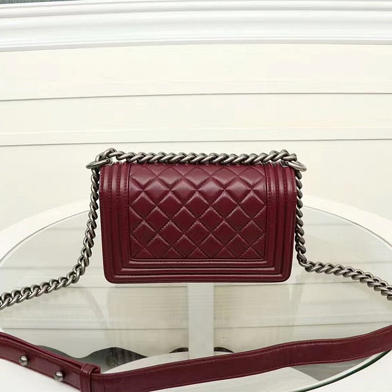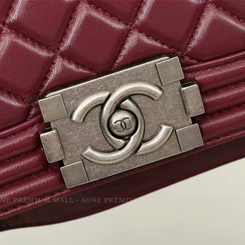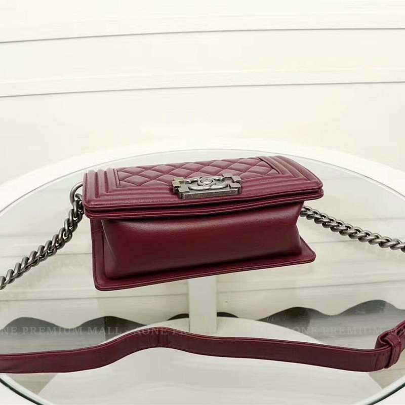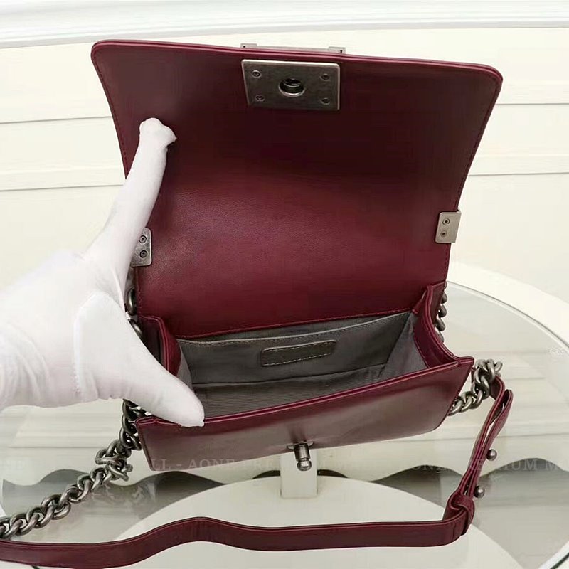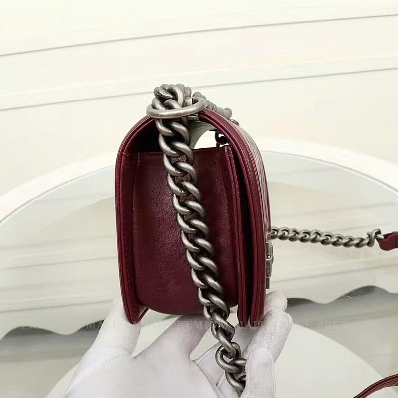 Chanel smoll Lambskin Boy Flap Bag A67085 -BURGENDI/silver