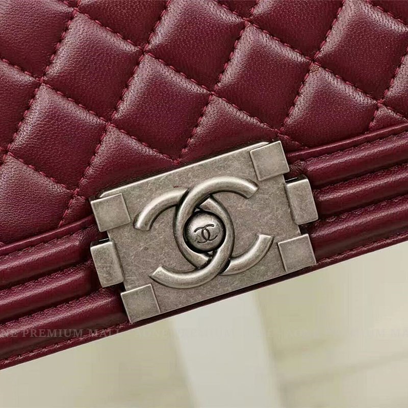 Chanel Midume Lambskin Boy Flap Bag A67086 -BURGENDI/silver