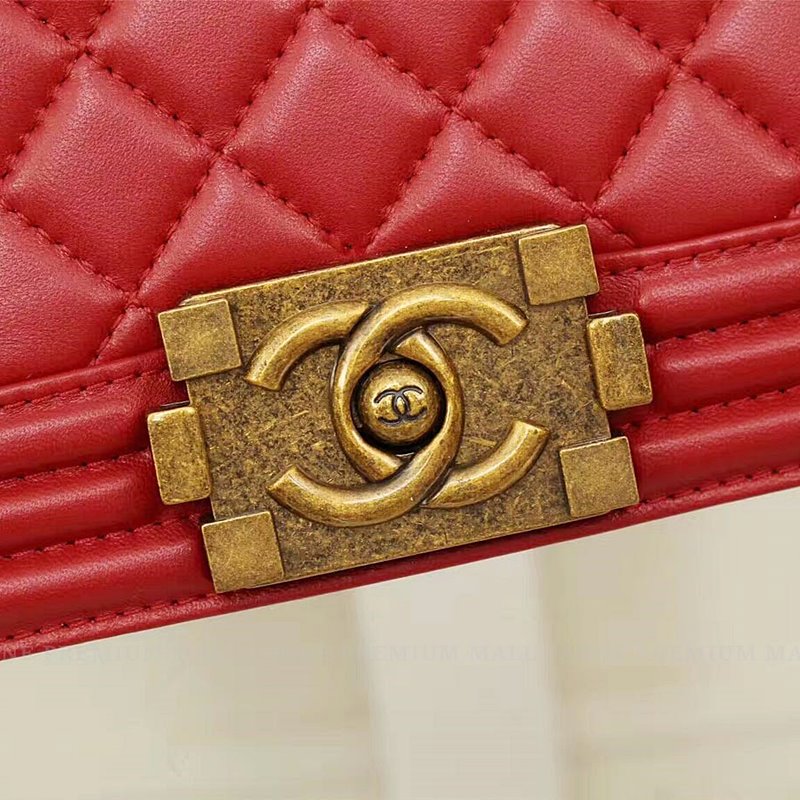 Chanel Midume Lambskin Boy Flap Bag A67086 -red/GOLD