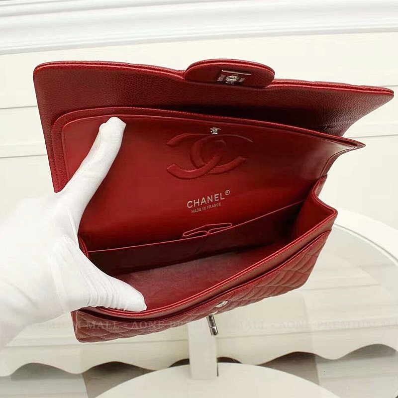 Chanel Midume 캐비어 classic Flap Bag A1112 -red/silver