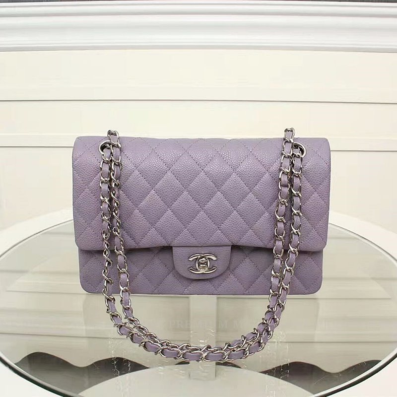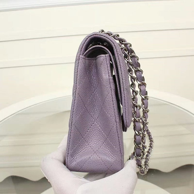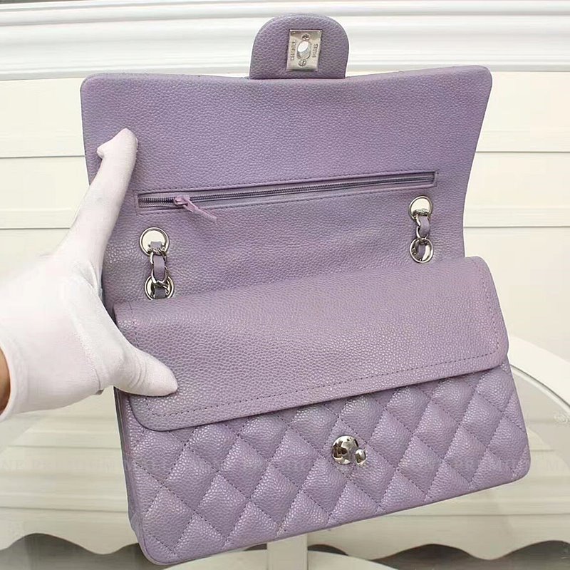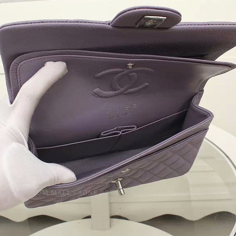 Chanel Midume 캐비어 classic Flap Bag A1112 -퍼플/silver