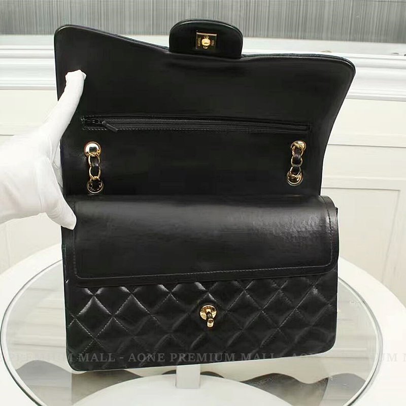 Chanel large Lambskin classic Flap Bag A1113 -black/gold