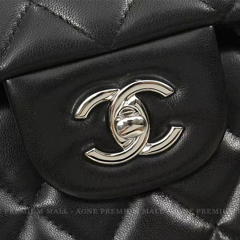 Chanel large Lambskin classic Flap Bag A1113 -black/silver