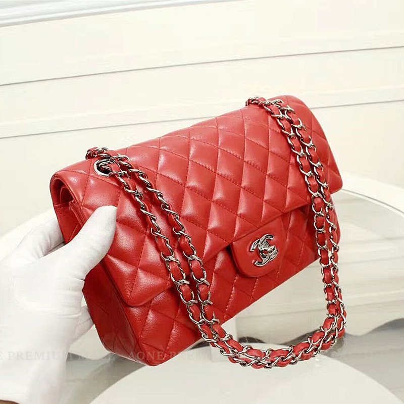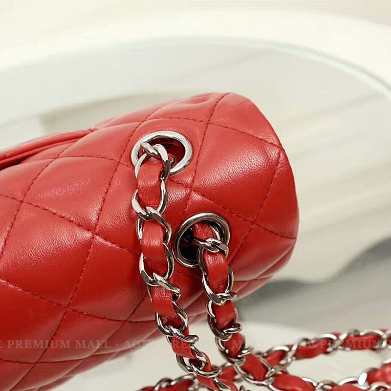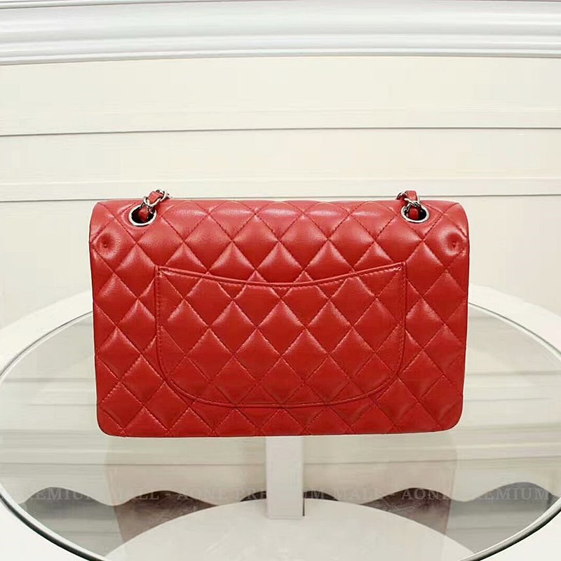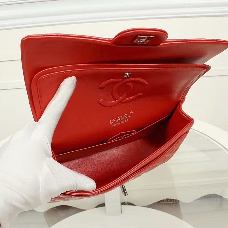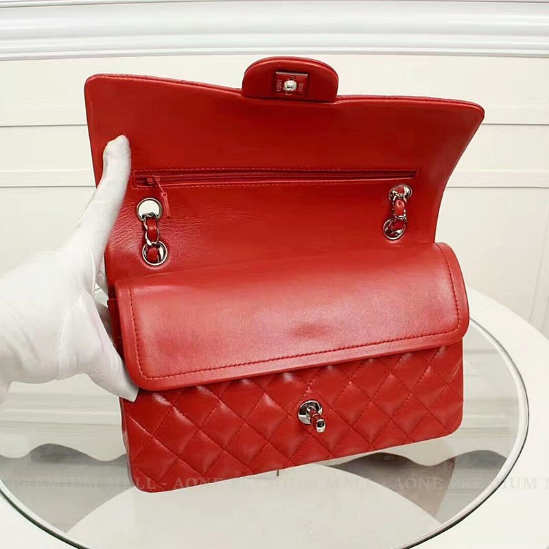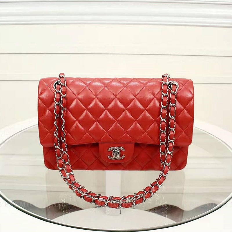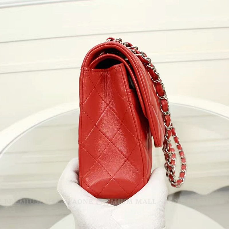 Chanel Midume Lambskin classic Flap Bag A1112 -red/silver