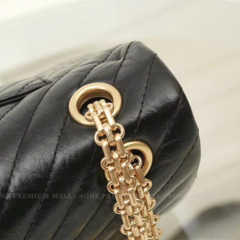 Chanel Chevron 2.55 Reisue Size 224 Flap Bag A1112 -BLACK/GOLD