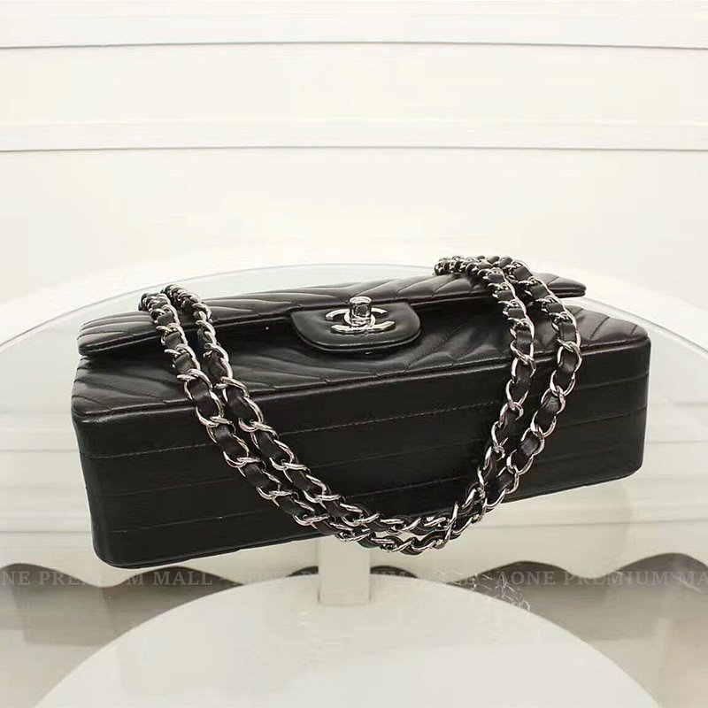 • 샤넬 쉐브론 램스킨 플랩 백A1112 -블랙/실버