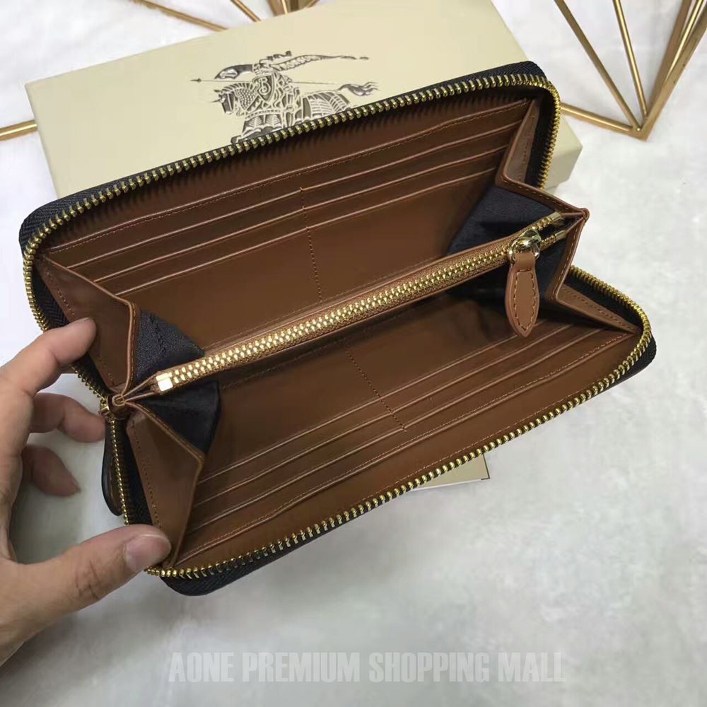 • 버버리 호스페리 체크 가죽 지퍼라운드 지갑 -브라운