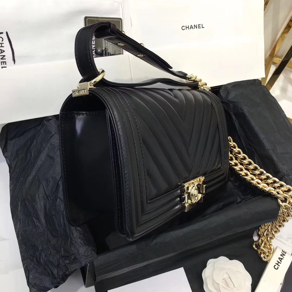 • 샤넬 탑핸들 보이백28-은장/블랙/카프스킨