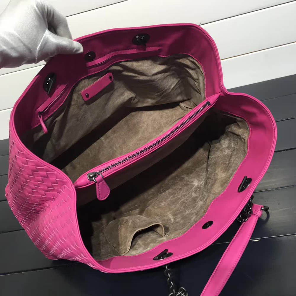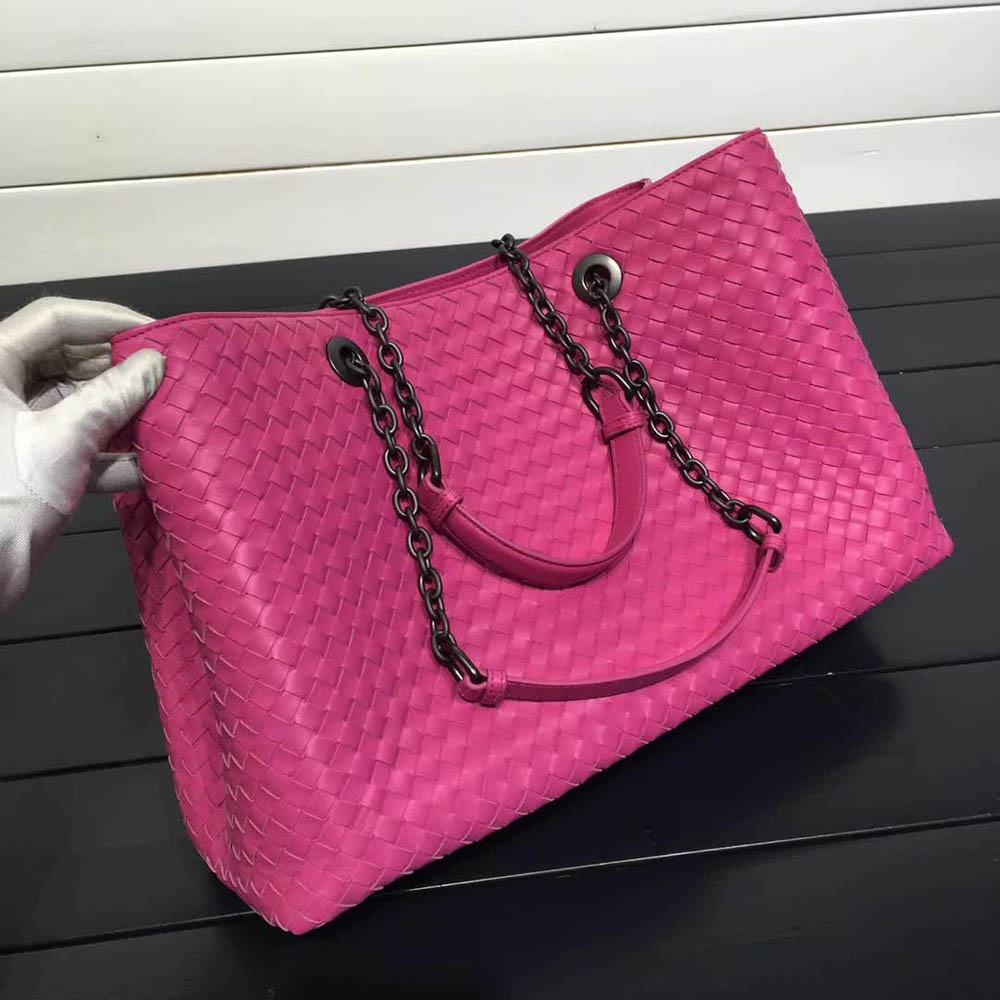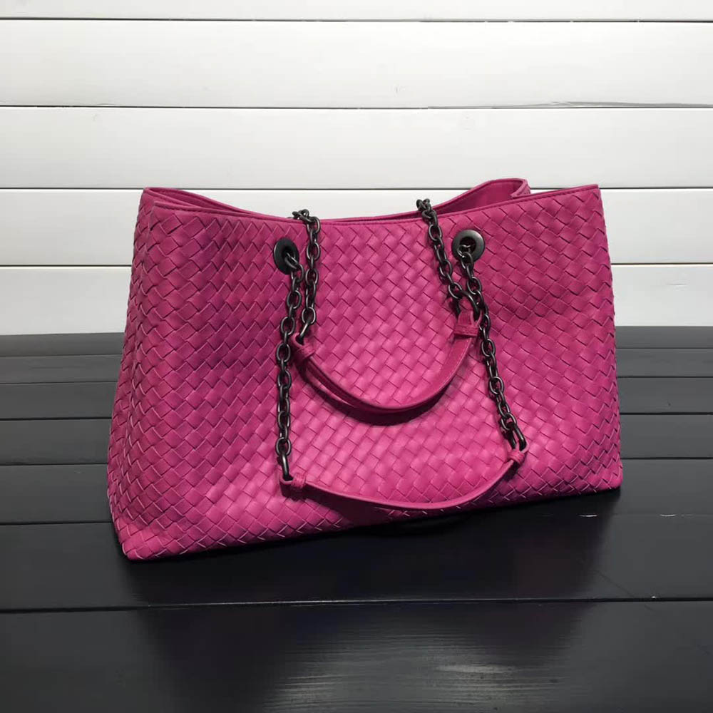 나파 가죽 소재의 직사각형 토트 백 예술적인 장인 정신이 돋보이는 인트레치아토 모티브의 심리스 디자인 모델입니 넉넉한 사이즈로 뛰어난 실용성을 겸비한 이 제품은 길이 조절 가능한 체인과 가죽 핸들을 이용해 숄더 백으로도 연출할 수 있습니 부드러운 스웨이드 안감으로 처리된 내부는 넓은 지퍼 파티션 양 옆으로 두 개의 넉넉한 수납공간을 갖추고 있습니 한쪽 수납공간에 열쇠나 휴대폰 작은 소지품 등을 넣을 수 있는 한 개의 지퍼 포켓과 두 개의 용도 플랫 포켓을 갖추고 있습니 소재: 나파 가죽 컬러: 블랙 메탈 장식: 브루니토 마감 세로: 25cm 가로: 40cm 폭: 16cm