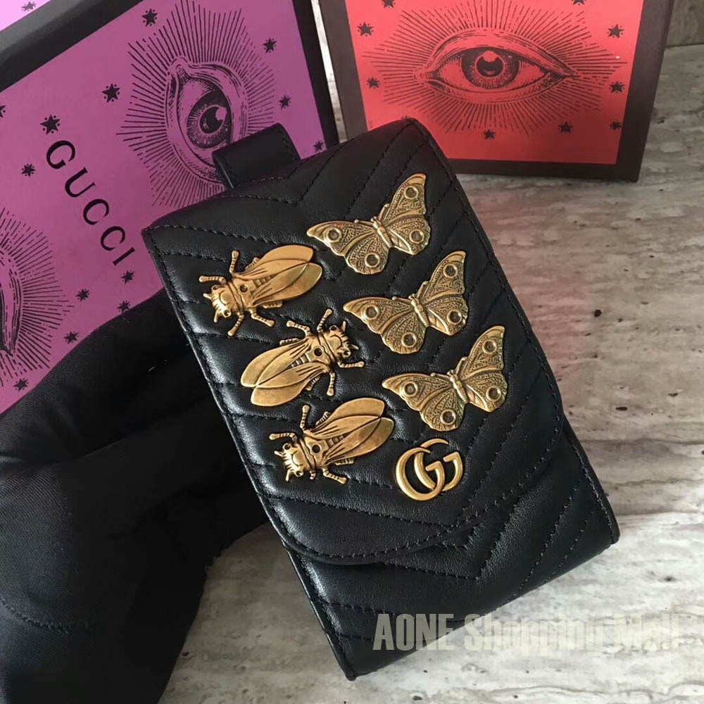 • 구찌 나비 디테일의 가죽 탑 핸들 백 488691   -화이트