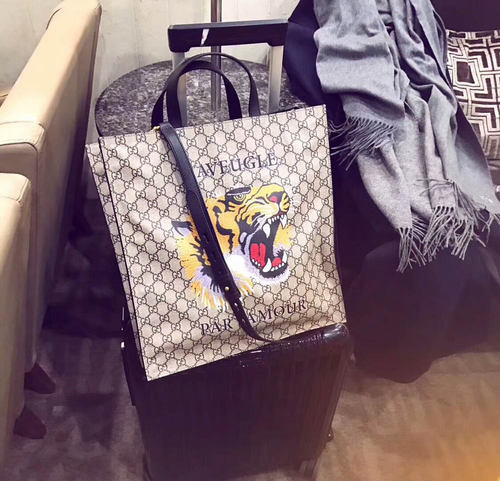 • 구찌 나비 디테일의 가죽 탑 핸들 백 488691   -화이트