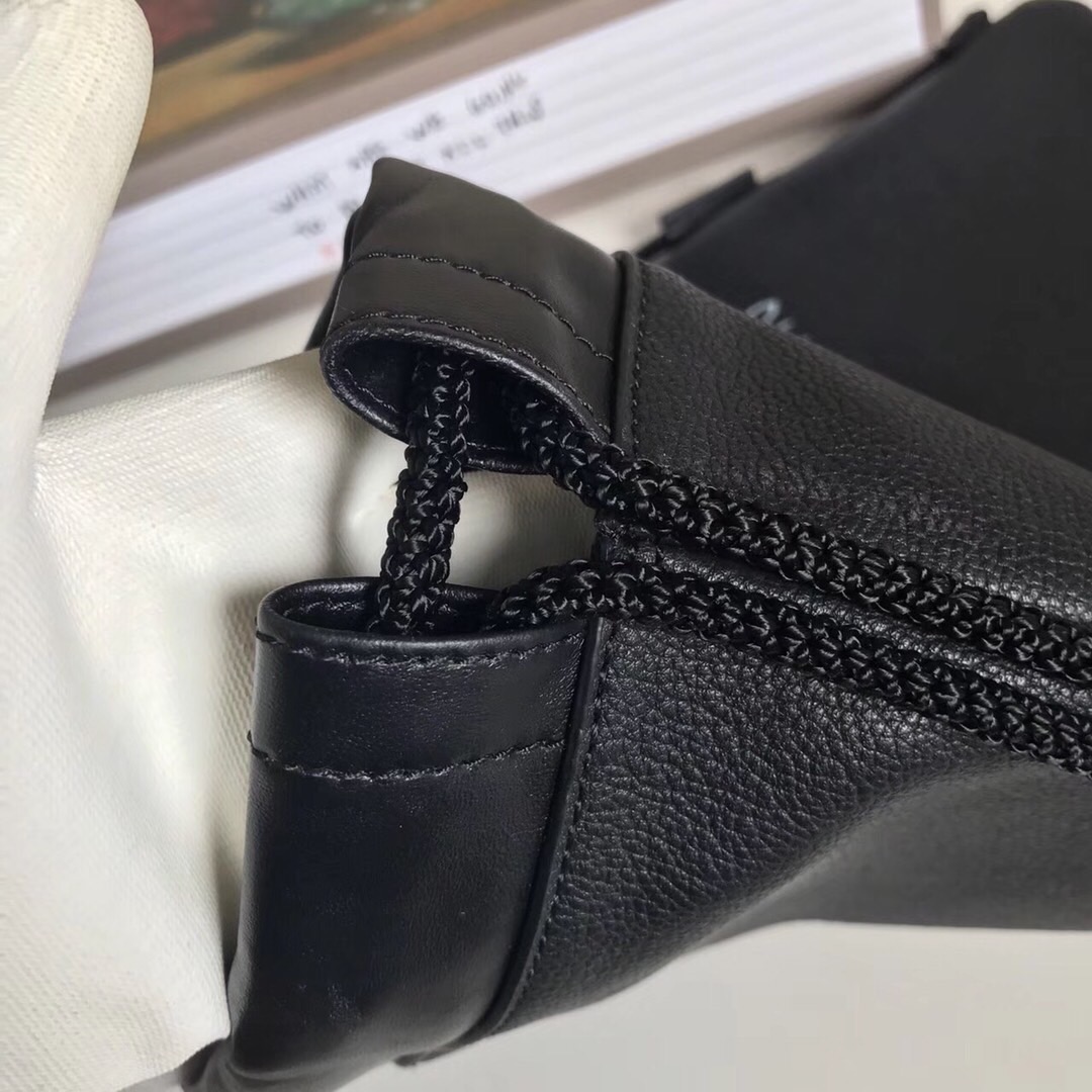 부드러운 텍스처드 가죽 드로우스트링 백팩. 앞면에 1980년대 빈티지 프린트에서 영감을 받은 레트로 스타일 구찌 로고 모티브 장식. 2개의 가죽 핸들로 토트백 스타일로 착용 가능. 2018 크루즈 컬렉션 구찌 빈티지 로고 장식의 블랙 가죽 더블 가죽 핸들 조정 가능한 끈으로 활용할 수 있는 로프 스트랩 가로 38cm x 세로 45cm