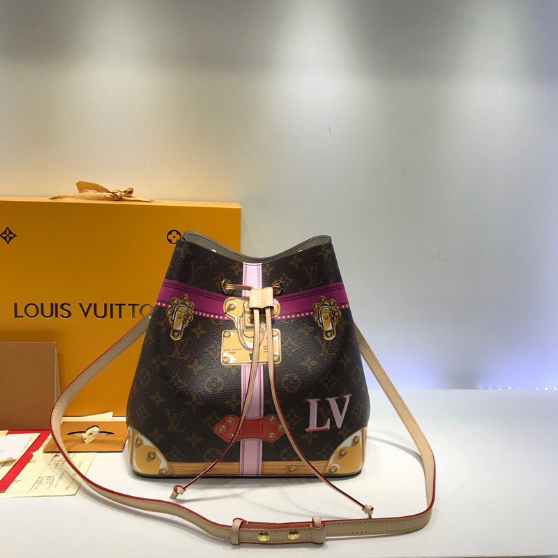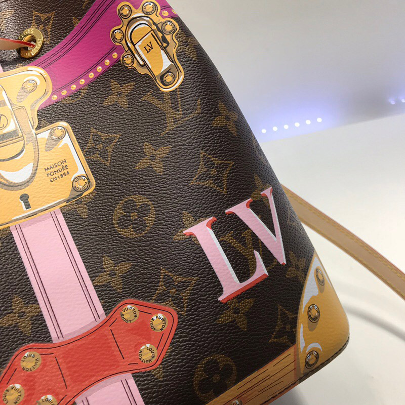 트렁크 모서리와 유서 깊은 잠금장치를 연출한 트롱프 뢰유(trompe loeil) 스크린 프린트가 루이 비통의 헤리티지에 재미를 더해주는 유연한 모노그램 캔버스 소재의 네오노에입니다. 트렌드를 반영하는 버킷 백으로 길이 조절형 스트랩을 늘이면 크로스 바디 스타일로 모던하게 착용할 수 있습니다.26.0 x 26.0 x 17.5 cm (길이 x 높이 x 너비) - 프린트를 더한 모노그램 코팅 캔버스 - 송아지 가죽 트리밍 - 초극세사 섬유 안감 - 골드 마감 금속 디테일 - 내부 중앙 지퍼 수납칸 1개 - 프레스 버튼이 달린 길이 조절형 긴 스트랩 1개 - 끈 잠금장치 1개 - 종류: 섬유제품 핸드백 - 소재: 캔버스 천연가죽(소)