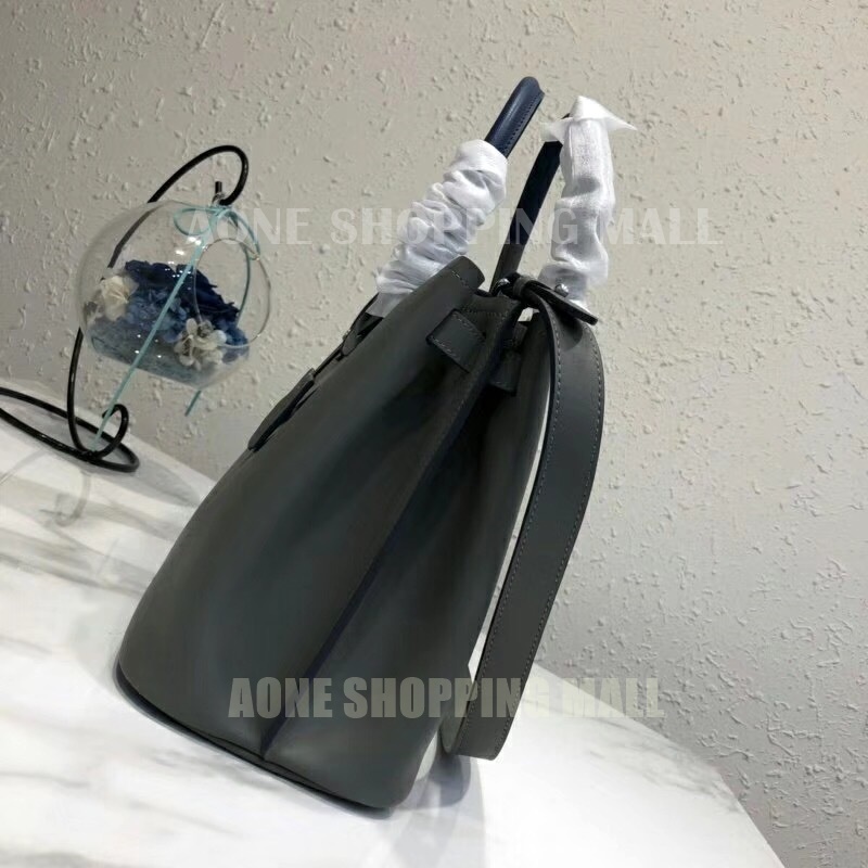 송아지 가죽 투톤 가죽 핸들 2개 탈부착이 가능한 가죽 숄더 스트랩 전면 스트랩 및 자석 버튼 잠금 메탈 레터링 로고 중앙 지퍼 포켓 1개 대비를 이루는 나파 가죽 라이닝