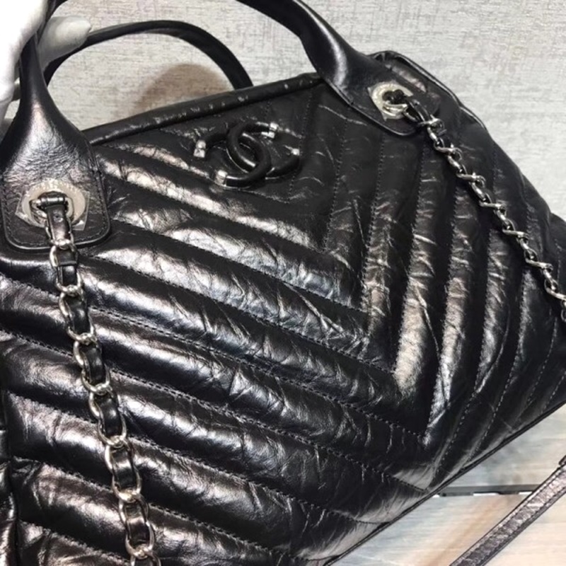 • 샤넬 쉐브론 소프트 가죽 보울링 라지 백 블랙 2018