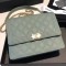 • 샤넬 트위드 우븐 스트로우 클래식 플랩 백 다크 그린