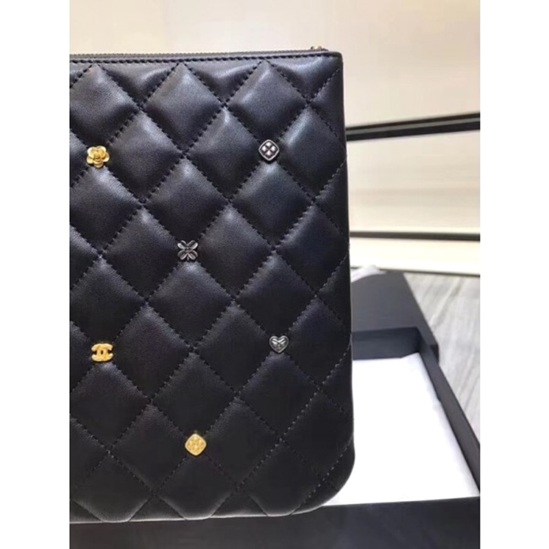 Chanel Lambskin 18k Charms Pouch A81619 Black 2018 Collection