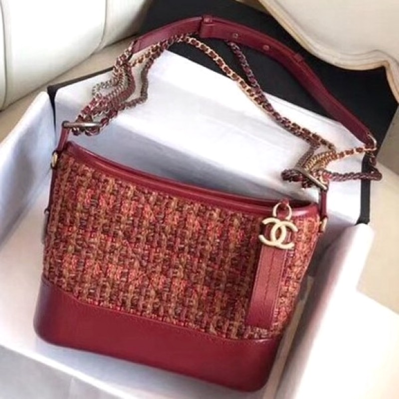 Chanel Tweed/Calfskin Gabrielle Small Hobo Bag A91810 Red 2018 Collection