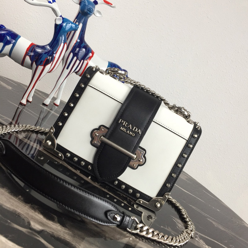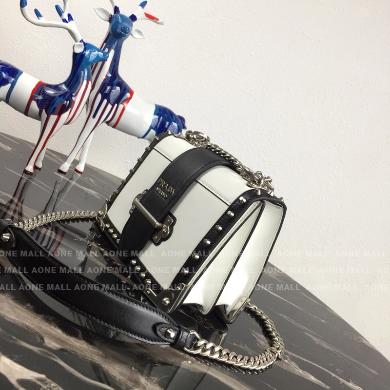 프라다 카이에 스터드 가죽 숄더 백 1BH018 화이트 요약정보 및 구매