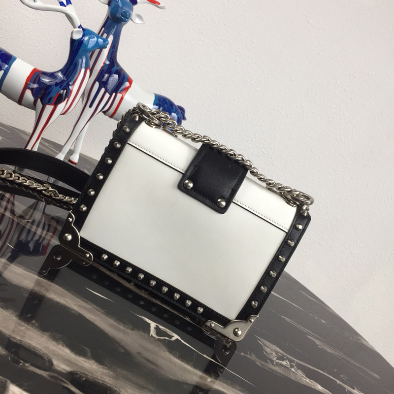 • 프라다 카이에 스터드 가죽 숄더 백 1BH018 화이트