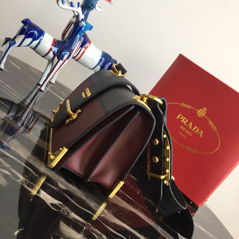 • 프라다 카이에 가죽 숄더백 1BD045 가넷레드