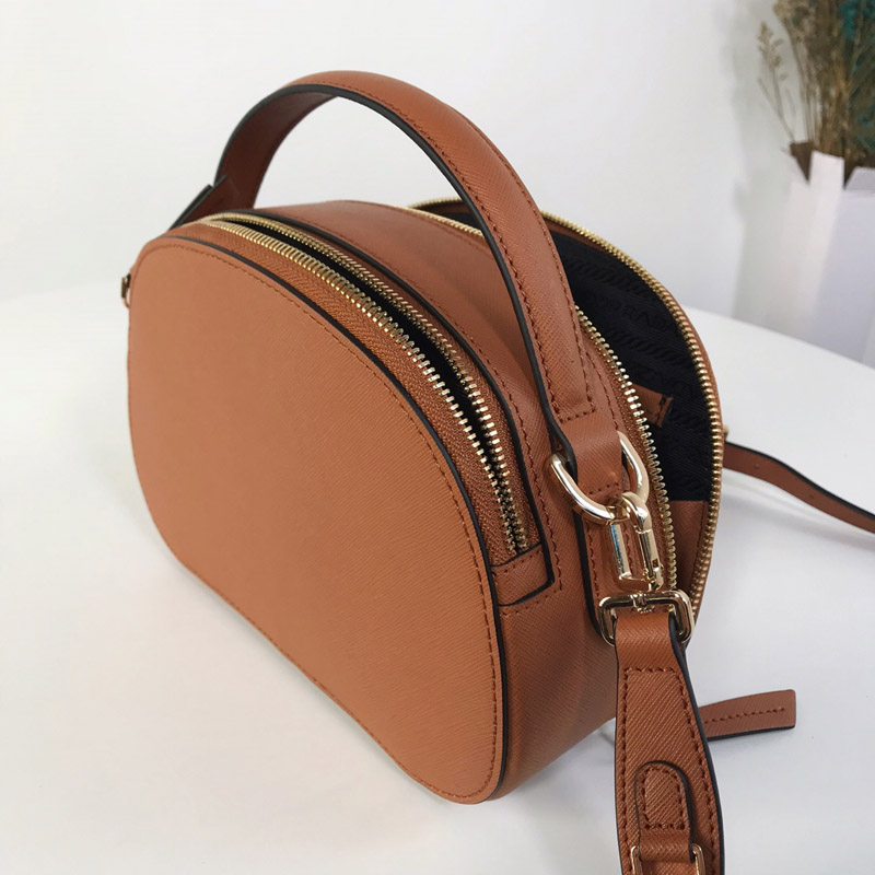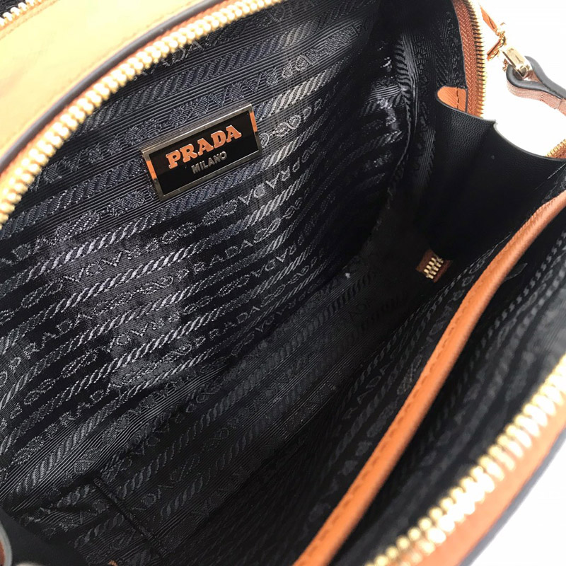 • 프라다 송아지 가죽 투톤 가죽 핸들 핸드백 1BG148 레드/실버