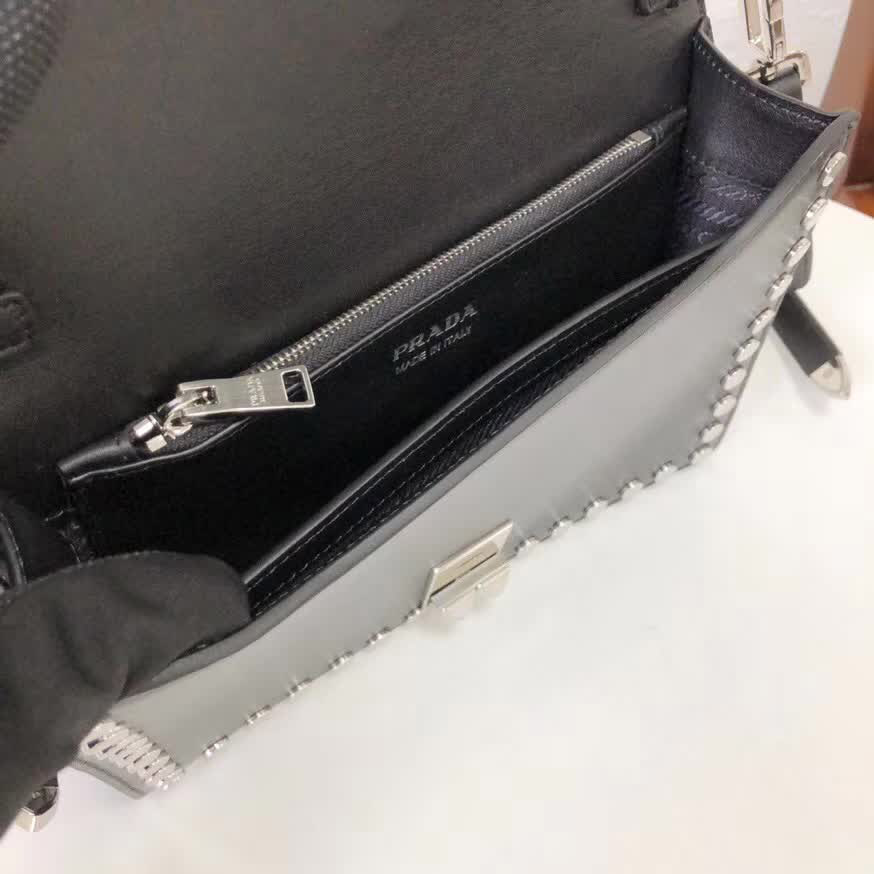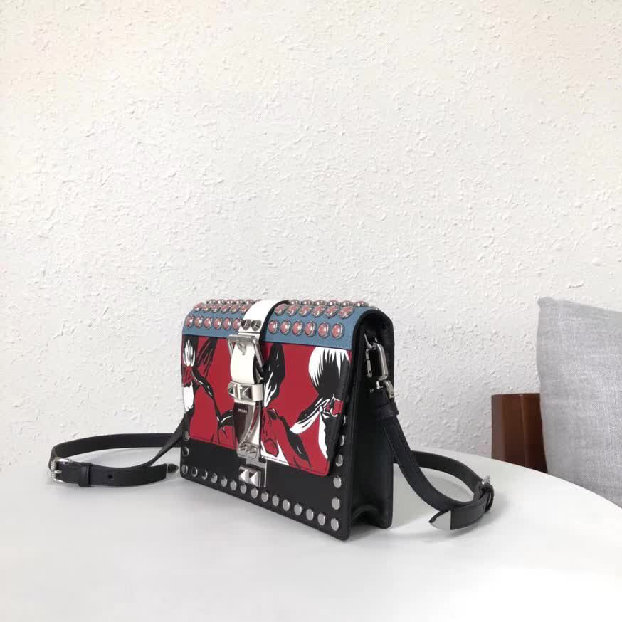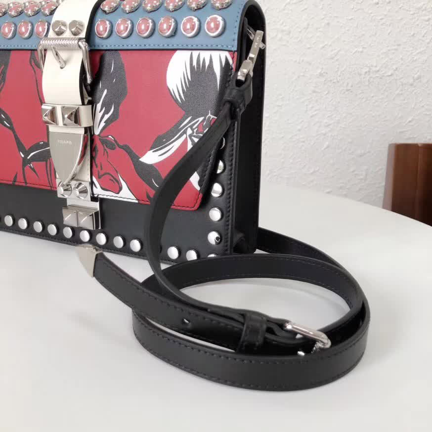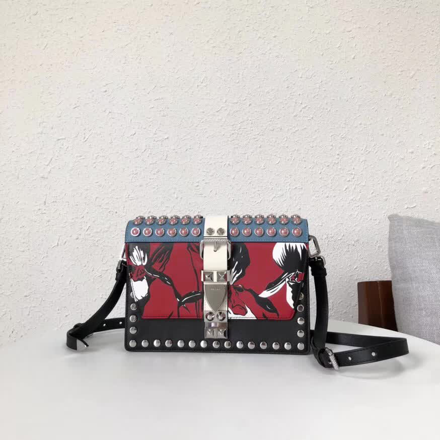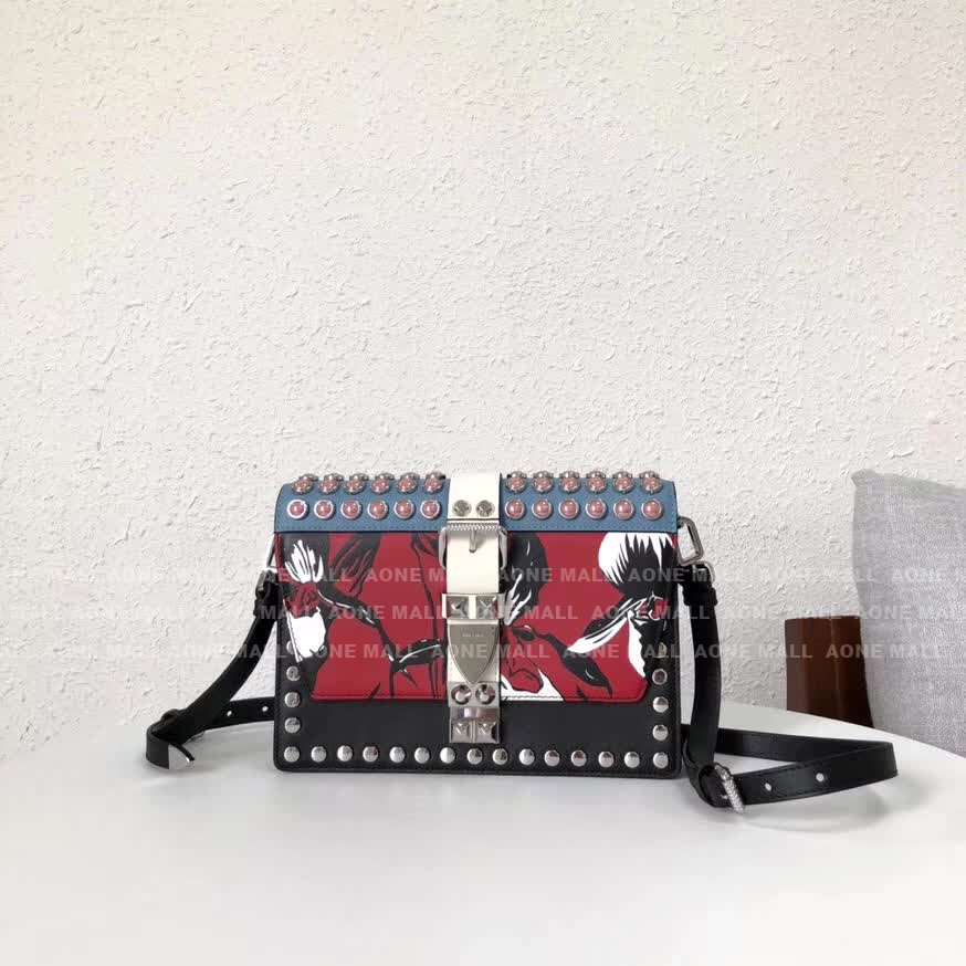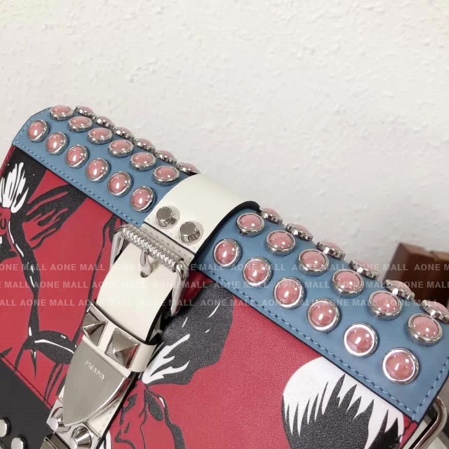 • 프라다 엘렉트라 프린트 가죽 숄더백 1BD120 파이어 엔진 레드/블랙
